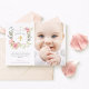 Esta hermosa y elegante tarjeta de agradecimiento del Bautismo presenta un marco de encantadores rosas de acuarela rosa con hojas verdes y falsos acentos de oro rosa, y un suave texto gris sobre un fondo blanco limpio para un look que logra ser a la vez moderno e inspirado en la cosecha. También hay una falsa cruz dorada y un lugar para tu foto personal. La parte posterior de la tarjeta presenta un marco floral a juego sobre un fondo rosa suave y rubor.