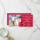 Budget wedding thank you cards with tropical flowers and a place for a wedding photo. Add a message in white script over a pink-red background. Red hibiscus flowers decorate the bottom.