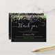 Elegante Purpurina holográfico tarjeta de agradecimiento negro