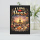 A romantic, richly illustrated Parisian scene celebrating love, cuisine, and iconic landmarks beneath a glowing sunset sky.