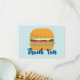Una tarjeta de agradecimiento con una ilustración de una hamburguesa simple. Lechuga, tomate y hamburguesa de carne. Simple y delicioso. La parte trasera de la tarjeta tiene un mensaje que se puede personalizar o dejar tal como está.