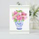 Tarjeta De Agradecimiento Jarrón Chinoiserie Peonías Rosadas Borde Verde