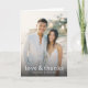 This wedding thank you card features a beautifully composed photograph of two individuals standing closely together, exuding joy and warmth. The color palette is dominated by soft beige and light gray tones, complemented by the golden glow of the background lighting, creating a serene and romantic atmosphere. The design employs a contemporary, elegant style with minimal motifs, focusing on the central figures to maintain a polished yet relaxed look. Typography at the bottom includes a clean, modern sans-serif font that reads "love & thanks," enhancing the heartfelt mood conveyed by the lifelike representation of the subjects. Perfect for expressing gratitude after a special occasion, this card captures an affectionate moment in a stylish and inviting manner.