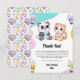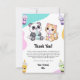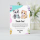 Este dulce bebé panda y bebé tigre están disfrutando de bubble tea para esta nota de agradecimiento de fiesta de cumpleaños infantil caprichosa.