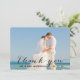 La boda simple de la foto de la capa de la escritura de la escritura le agradece las tarjetas. Diseñe por Elke que Clarke© para MonogramGallery imprimió por Zazzle. Envíe su boda le agradecen mensaje como se casa nuevamente a sus amigos y la familia usando esto maravillosamente, simple le agradece cardar con las palabras "le agradece" escrito en una capa negra del texto de la escritura de la tipografía de la escritura. Substituya la foto de la muestra por sus la propia. Añada su personal le agradecen mensaje en la parte posterior o dejan el espacio en blanco y la mano escribe su mensaje personalmente. Otro colorea disponible.