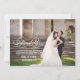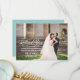 LA ESCRITURA ROMÁNTICA EL %PIPE% QUE SE CASA LE AGRADECE TARJETA DE LA FOTO. Elke Clarke© en www.zazzle.com/epclarke*. La capa blanca hermosa de la fuente de la escritura y personalizado le agradece mensaje con del petirrojo del huevo (como la caja azul) del color de fondo la parte posterior azul encendido.