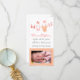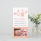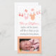 Una fiesta de bienvenida al bebé adaptable le agradece cardar la ropa rosada, roja y anaranjada de la atracción del bebé que cuelga en una cuerda para tender la ropa con 2 mariposas que vuelan alrededor. Uso de los modelos florales y de las rayas y del esquema de color conveniente para las niñas. El marco floral en la parte inferior de la tarjeta es insertar la imagen de la foto del bebé o de familia. Diseño por Doodle oxidado.