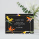Las aves del paraíso, florales le agradecen las tarjetas. Fondo negro dramático con las flores brillantes de las aves del paraíso. Adicional coordinando el boda tropical, moderno las fuentes están disponibles en MetroEvents en Zazzle.