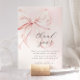 Celebra la alegre llegada de una niña con nuestra tarjeta de agradecimiento coquette de lazo rosa. Una forma atenta de agradecer a tus invitados por celebrar a tu pequeño.