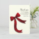 Tarjeta de agradecimiento de boda clásica con lazo rojo minimalista y elegante.