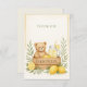 Envíe a sus huéspedes un cálido agradecimiento con esta tarjeta de ducha de natación con tema de limón. Coordinada con nuestro rústico diseño de invitación "granjas frescas", esta tarjeta tiene limones acuarelas y un oso de peluche en una caja de madera. Personalice el mensaje o deje espacio para las notas manuscritas. Perfectamente emparejado para duchas neutras y eventos de primavera.