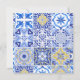 Esta fruta cítrica de limón acuarela baldosas mediterráneas Ella encontró su tema de colección principal de apretón características limón con flores de limón y baldosas mediterráneas azules y blancas con receta para el juego de la novia. Una tarjeta de agradecimiento perfecta para una despedida de soltera de limón para tus invitados