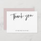 Tarjeta de agradecimiento simple y moderna con letras a mano en rosa.