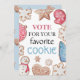 Agregue un toque divertido y festivo a su fiesta de intercambio de galletas con esta adorable tarjeta de 5x7 pulgadas. Con la frase "Vote por su galleta favorita" en una fuente encantadora, esta tarjeta es perfecta para mostrar en su mesa y animar a los invitados a votar por sus golosinas favoritas. La tarjeta se puede enmarcar y exhibir fácilmente durante años, lo que la convierte en un gran recuerdo de su fiesta.