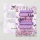 Diseño caprichoso para amantes de los libros para una ducha de novia con una pila de libros pintada con acuarela, flores silvestres rosadas y moradas, y mariposas.