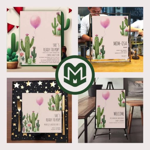 Ready to Pop Girl Balloon Cactus Green Baby ShowerDiseñado por Max Marshall