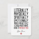 Expresar la más profunda gratitud con esta audaz y emotiva carta de agradecimiento. La parte delantera de la tarjeta contiene el más sincero mensaje: "Literalmente físicamente espiritualmente emocionalmente incondicionalmente no podría haberlo hecho SIN USTED" Esta potente declaración está apilada en un diseño vertical y limpio con un moderno tipo de letra negro, mientras que las palabras "SIN USTED" se resaltan en rojo para enfatizar su impacto emocional. Debajo del mensaje, un corazón dibujado a mano y una firma cursiva estilo "Amor, Jenna" añaden un toque personal y cálido. Diseñada con una estética minimalista, esta tarjeta combina simplicidad y emoción, lo que la hace perfecta para agradecer a un cuidador, mejor amigo, compañero, terapeuta, o a cualquiera que te apoyara en un viaje desafiante. Ya sea que esté buscando mostrar aprecio después de la enfermedad, crecimiento personal o cualquier hito significativo, esta tarjeta le entrega su mensaje de una manera genuina e inolvidable.