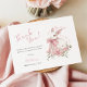 This Little Bunny thank you card features soft watercolor florals, a sweet bunny illustration, and a romantic pink bow accent.