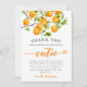 Pequeño tema lindo ducha bebé gracias a la tarjeta de plantilla que incluye ilustracion acuarela de frutas naranjas en una rama de árbol. El texto dice "Gracias por arrojar nuestra pequeña corbata". El mensaje por omisión agradece a los clientes la asistencia a la ducha y el regalo. Diseño neutro desde el punto de vista del género.