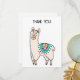 Tarjeta De Agradecimiento llama alpaca de dibujos animados sonriente y feliz