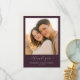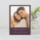 This elegant wedding thank you card features a warm, romantic photo design with soft lighting that evokes a cozy and intimate mood. The layout includes a stylish script typography at the bottom, adding a touch of sophistication to the overall look. With its rich color palette of deep purples and warm neutrals, this card is perfect for expressing gratitude after a heartfelt celebration. It's designed to be personalized, allowing couples to add their own special details while maintaining an inviting and graceful tone. Ideal for newlyweds looking to share their appreciation in a meaningful way.