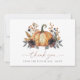 Este diseño presenta una elegante calabaza en acuarela rodeada de flores y follaje oscuro de otoño. Perfecto para la lluvia de novia en otoño.