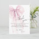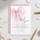 La elegante tarjeta de agradecimiento Pink Watercolor Bow (Lazo de Acuarela Rosa) irradia un encanto sofisticado y romántico, estableciendo un tono pulido y sincero para la gratitud posterior a la celebración. Con un lazo de acuarela de gran tamaño y deslumbrante en un delicado tono rosa polvoriento, este diseño captura hermosamente la esencia de la gracia femenina moderna. Las capas suaves y translúcidas del lazo añaden un sentido de movimiento etéreo y lujo personalizado a su papelería personalizada.