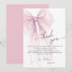 La elegante tarjeta de agradecimiento Pink Watercolor Bow (Lazo de acuarela rosa) irradia un encanto sofisticado y romántico, estableciendo un tono pulido y sincero para su gratitud post-celebración. Con un lazo de acuarela de gran tamaño y deslumbrante en un delicado tono rosa polvoriento, este diseño captura hermosamente la esencia de la gracia femenina moderna. Las capas suaves y translúcidas del lazo añaden un sentido de movimiento etéreo y lujo personalizado a su papelería personalizada.
