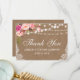 Luces de cuerda florales rosadas de acuarela de arpillera de boda rústica tarjeta de agradecimiento de encaje