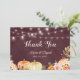 Tarjeta de agradecimiento Luces de Cadena Floral de Otoño Rústico de Calabaza Borgoña.