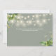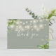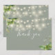 Tarjeta de agradecimiento con luces de cadena de eucalipto verde elegante, personalizada con un mensaje especial en el reverso sobre fondo verde salvia. Diseñada por Thisisnotme©