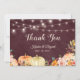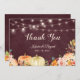 Tarjeta de agradecimiento Luces de Cadena Florales de Calabaza Otoñal Rústica de Borgoña.