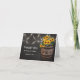 Elegante tarjeta de agradecimiento de boda country con un fondo rústico de pizarra negra, luces de hadas, girasoles amarillos dorados de verano, un barril de madera de viñedo con tus iniciales y un trozo de cuerda anudada.