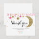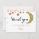 Tarjeta de agradecimiento luna rosa brillo dorado