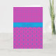 Una tarjeta de agradecimiento de moda con el saludo en galés y un patrón de mezcla de puntos de polka azul en magenta y un patrón de coordinación de magenta y azul.