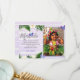 Tarjeta de agradecimiento con mahalo, diseño tropical y fondo púrpura.