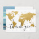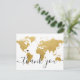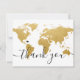 Tarjeta De Agradecimiento Mapa del mundo dorado y foto de boda