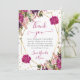 Diseño elegante boho de acuarela de flores de verano rosadas y púrpuras y follaje con marco geométrico dorado