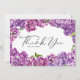 Envía agradecimientos con esta tarjeta postal de agradecimiento personalizable. Cuenta con flores de lila de acuarela con caligrafía caprichosa. Personaliza añadiendo tus datos. Esta tarjeta de agradecimiento floral es perfecta para uso personal y empresarial.