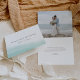 Diseñadas para coordinar con nuestra suite de invitados a la boda Seaglass Tides, estas tarjetas de agradecimiento de moda costera cuentan con un lavado de acuarela en verde pálido que evoca el flujo y el flujo natural del mar. Añada dos líneas de texto personalizado en elegantes letras marinas azul marino (nos encanta con "amor y gratitud" y sus nombres), así como un mensaje y una foto personalizado dentro. ¡Ideal para bodas en la playa, en verano o en destino!
