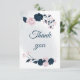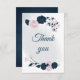 elegante marina y flores rosadas y hojas botánicas tarjeta de agradecimiento Los detalles del purpurina se simulan