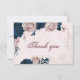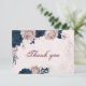 elegante marina y rosa polvoriento flores y hojas botánica tarjeta de agradecimiento Los detalles del purpurina y el Relieve metalizado se simulan