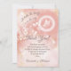 La parte superior de este chica artístico de la tarjeta de agradecimiento a tu bebé cuenta con una mariposa blanca en un halo y flores blancas sobre un fondo acuático rosa rosa de color pastel de albaricoque. El fondo de las acuarelas de tinta tiene manchas doradas mezcladas con flores transparentes blancas. Con un titular que dice: "Una mariposa está en camino", Gracias palabras en un elegante guión caligráfico y un texto personalizado con nombres personalizados.