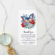 Funeral Patriótico De Mariposa Gracias Cartas. Estas tarjetas funerarias de simpatía incluyen una mariposa acuarela en un diseño patriótico de la bandera estadounidense con flores silvestres. Estas tarjetas de simpatía conmemorativas son perfectas para tarjetas de agradecimiento funerarias, o celebración de tarjetas de agradecimiento de vida. Personaliza con tu mensaje de agradecimiento, nombre y fechas....COPYRIGHT © 2023 Judy Burrows, Black Dog Art - Todos los derechos reservados. Tarjeta de agradecimiento por la solidaridad patriótica con el funeral de la mariposa