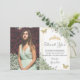Esta moda de Quinceañera foto de agradecimiento cuenta con un marco geométrico dorado adornado con delicada acuarela verde floral, suave vegetación de salvia y mariposas de flor. Personalízalo con tus detalles de forma fácil y rápida, simplemente pulsa el botón personalizar it para reorganizar y formatear el estilo y la ubicación del texto. ¡También es genial para Sweet 16 y cincoanera! c) El estudio Happy Cat Studio