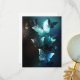 Mariposas brillantes nocturnas de menta sobre fondo abstracto negro.
