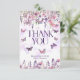 Tarjeta De Agradecimiento Mariposas y flores silvestres rosadas y moradas ca