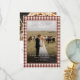 Elegant Rustic Brown Gingham Crest Monogram 2 Photo "Married & Bright" Card.