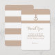 Tarjeta de agradecimiento marrón grisáceo y blanco a rayas con ancla. Artículos coincidentes en mi tienda.