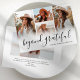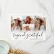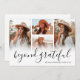Grad eterno gracias tarjetas para enviar a familiares y amigos para mostrar su aprecio por ellos ayudándote a celebrar tu graduación. Con 4 fotos de graduados en la parte delantera, el título "más allá de la gratitud" en una elegante letra de guión, en la parte trasera hay otra foto, y un mensaje personalizado de agradecimiento.